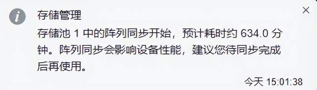 此时阵列开始同步,过程需要一些时间;