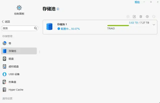 / O8 B9 t& m) t @5 E) T, W% U; q1 L0 D2、前往 至 控制面板>存储管理>存储池 点击 “编辑”按钮,在弹出的菜单中,选择“为阵列添加硬盘”,并确认相关信息; 8 j: E* E( O* v
